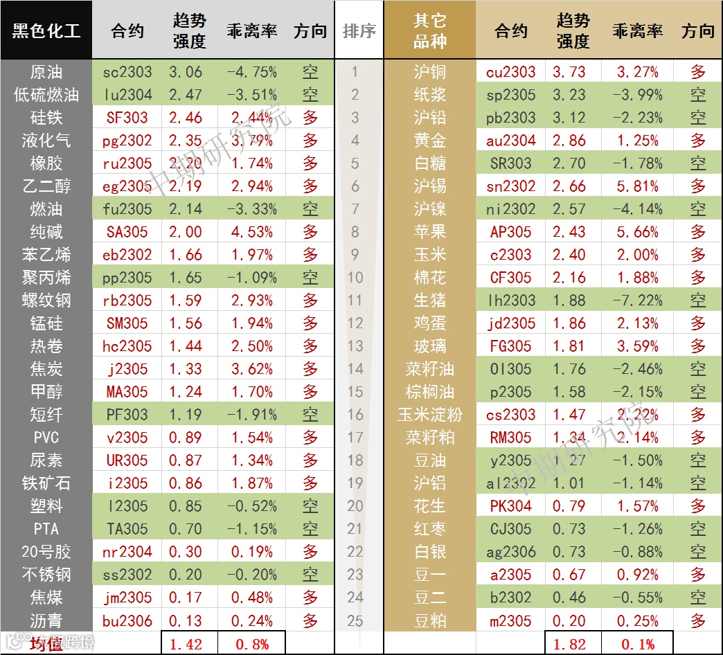 中期商品趋势榜 | 沪铜多头动能居前(0111)