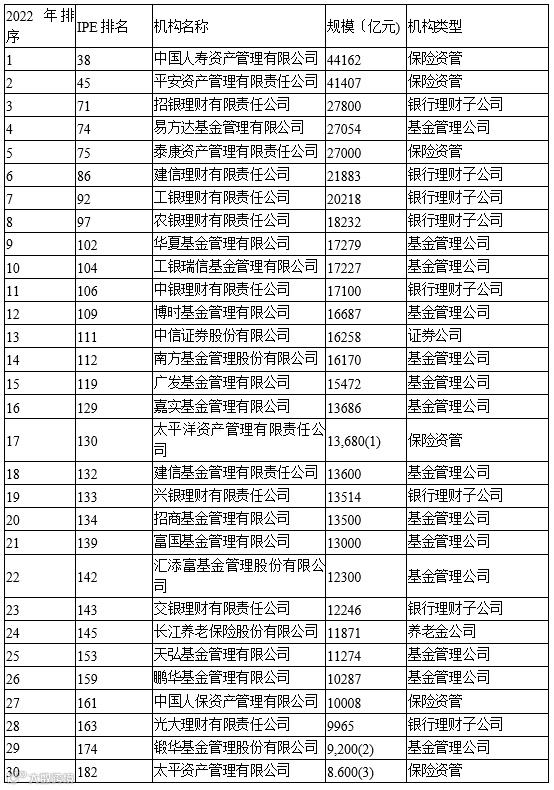 作为对比,我国虽然也有30家企业上榜前200名,且有8家机构进入前100名,但是规模与这些美国机构相比,仍有很大差距。排名最高的人寿资管规模仅4.4万亿元人民币,不及前十名榜单中排名最后的品浩公司的一半(见表2)。