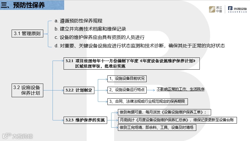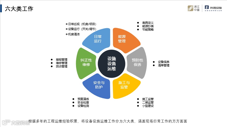 对于运营体系,明确提出各个项目需要规范对设备设施的基础管理工作,确保设备设施的管理工作满足客户要求。六大类运维管理工作中每一类工作如何结合利用poms工具来设定作业规范。