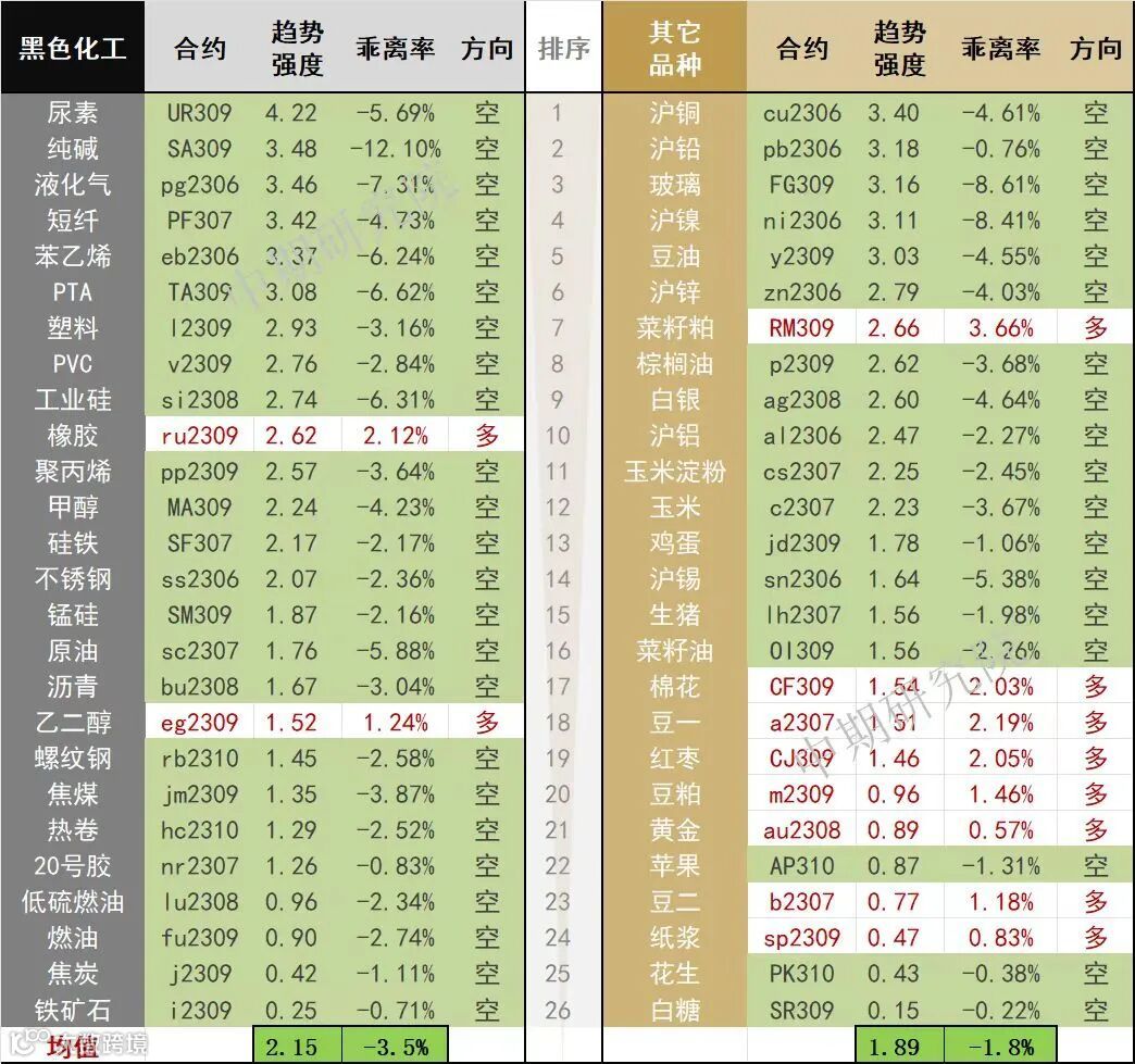 中期商品趋势榜 | 沪铜空头强势(0516)
