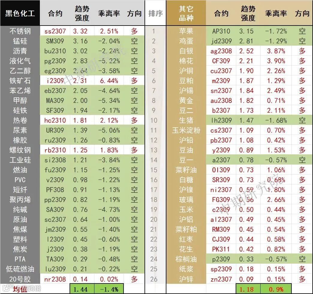 中期商品趋势榜 | 苹果空头增强(0612)