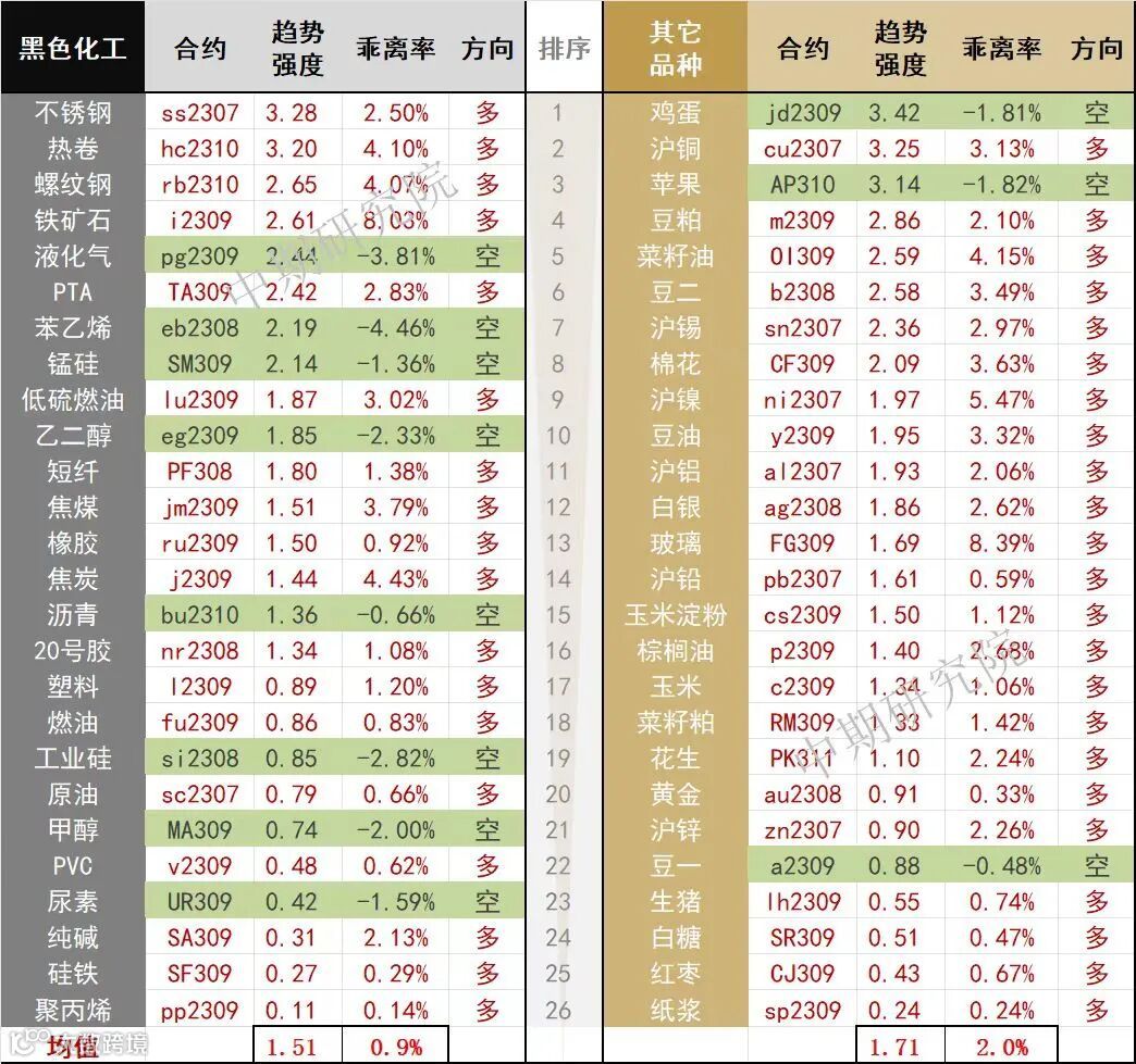 中期商品趋势榜 | 商品多头占优(0614)