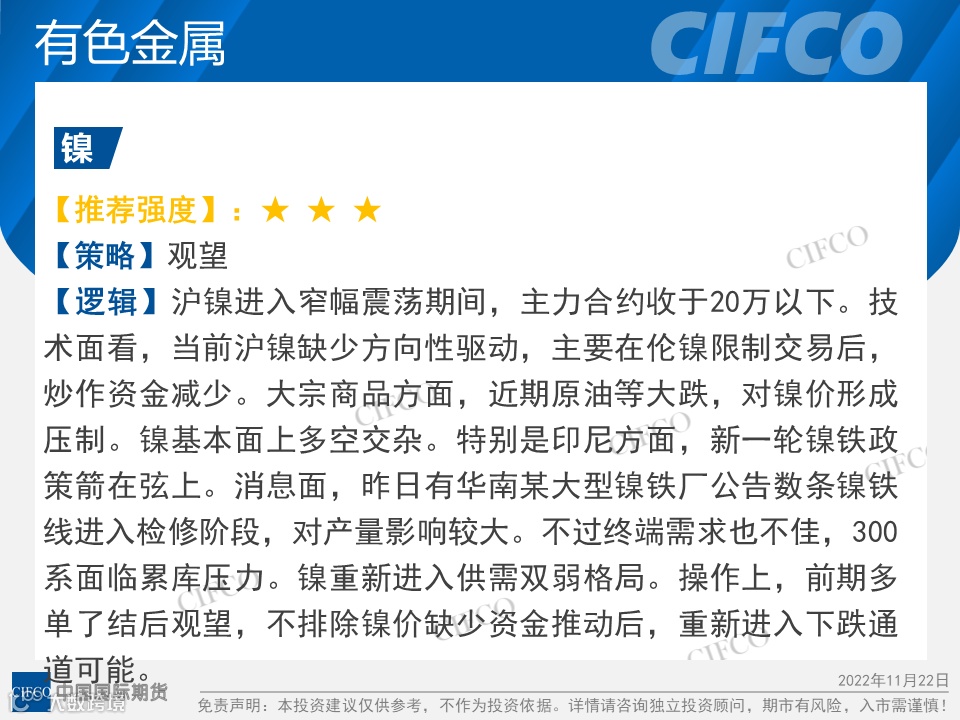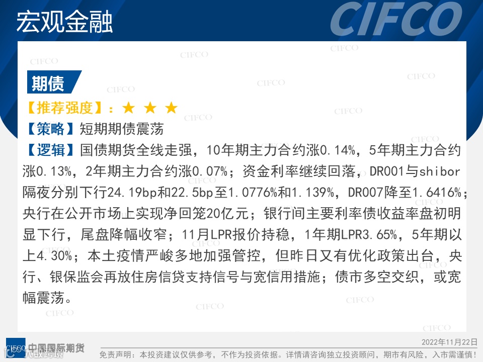 免责声明:客户不应视本报告为作出交易决策的惟一因素。本报告中所指的观点及服务可能不适合个别客户,不构成客户私人咨询建议。本公司未确保本报告充分考虑到个别客户特殊的投资目标、财务状况或需要。本公司建议客户应考虑本报告的任何意见或建议是否符合其特定状况,以及(若有必要)向取得期货交易咨询业务资格的经营机构或期货交易研究分析人员咨询。在任何情况下,本报告中的信息或所表述的意见并不构成对任何人的交易建议。在任何情况下,本公司不对任何人因使用本报告中的任何内容所引致的任何损失负任何责任。若本报告的接收人非本公司的客户,应在基于本报告作出任何交易决定或就本报告要求任何解释前向取得期货交易咨询业务资格的经营机构或期货交易研究分析人员咨询。