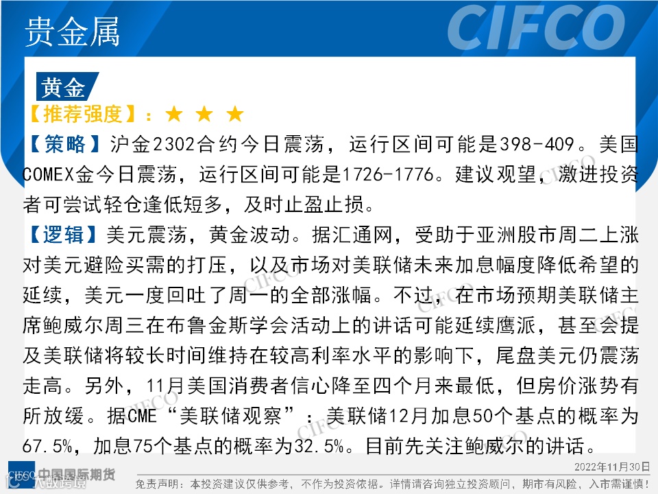 中期早知道 | 商品涨跌各半   顺势短线为宜 中国国际期货福建分公司