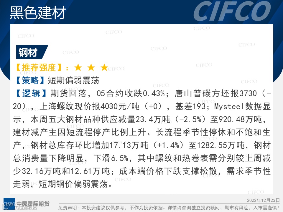 中期早知道 | 黑色震荡下跌  轻仓谨慎为宜 中国国际期货福建分公司