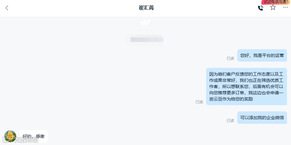 获得客户反馈之后,运营也立刻联系了两位工作者