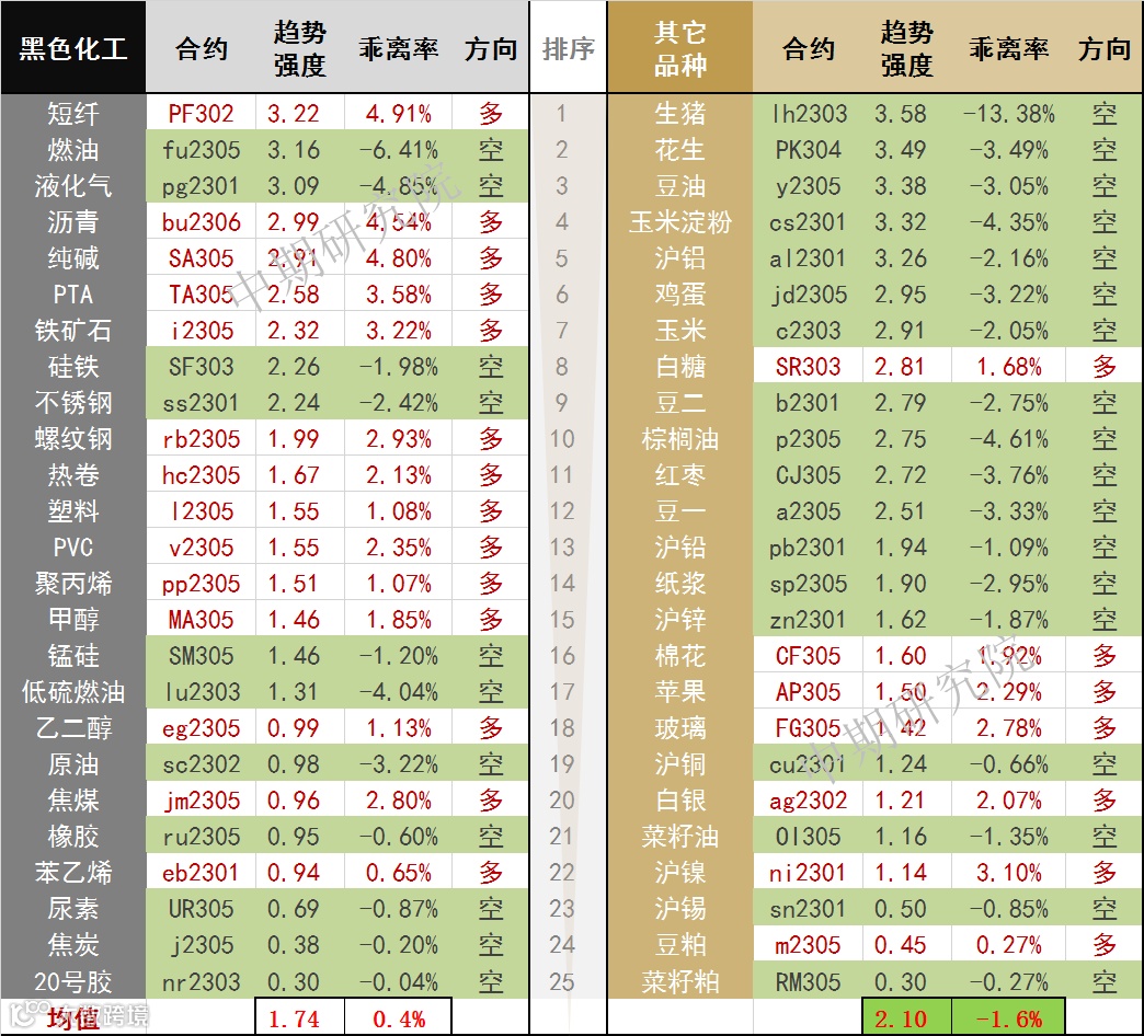中期商品趋势榜 | 生猪空头动能强(1219)
