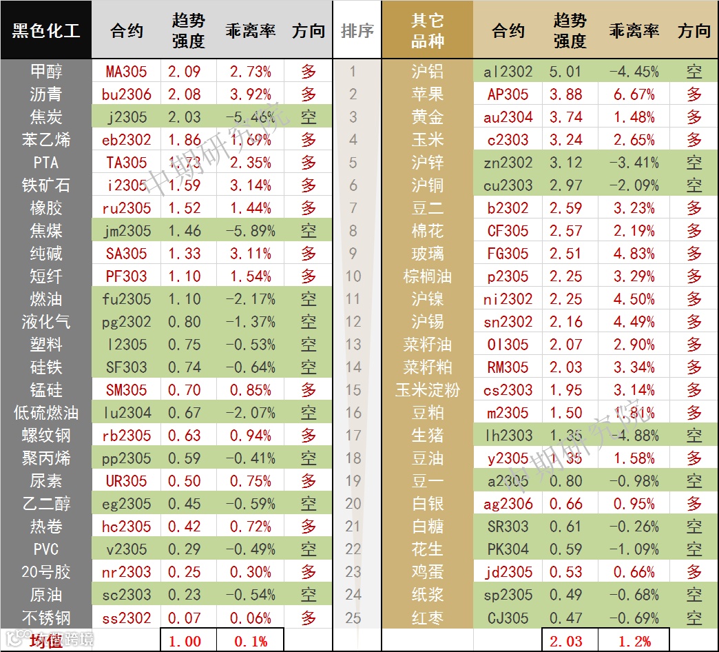 中期商品趋势榜 | 沪铝空头动能增强(0104)