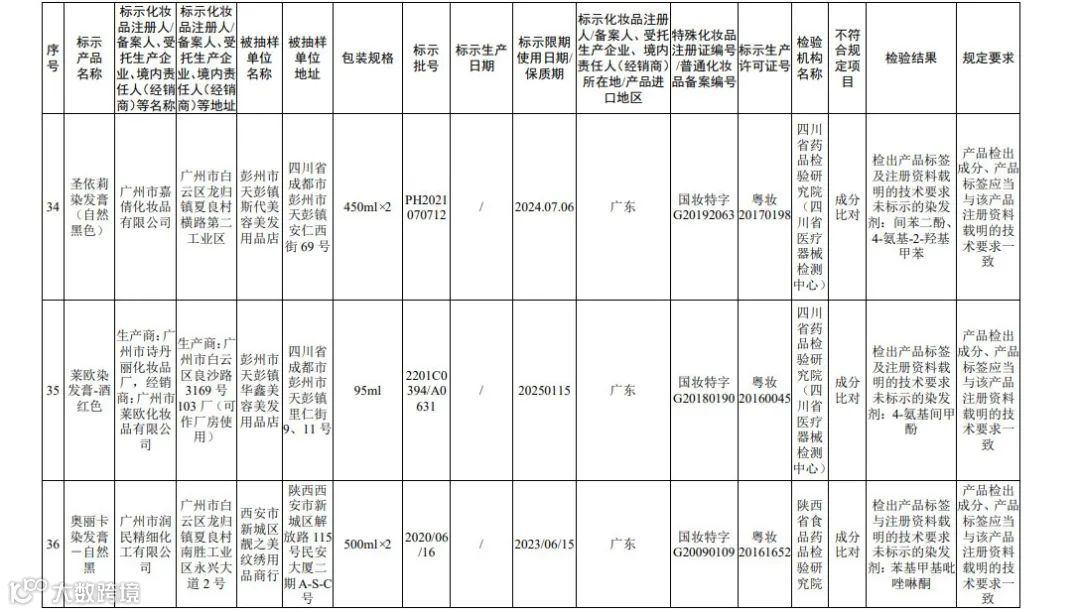 赛丝化妆品有限公司生产的赛丝之秀润黑露(自然黑)等45批次化妆品(含牙膏,下同)不符合规定(见附件)。