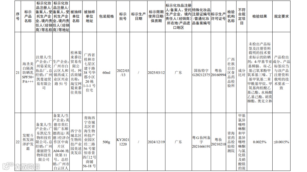 国家药监局关于45批次不符合规定化妆品的通告(2022年 第56号)