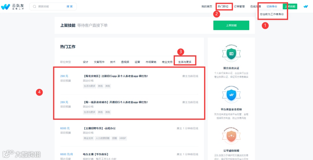 后立即雇佣(无门槛,无门槛,无门槛,重要的事情说3次~人人可以做哦~),完成任务后就可以领取任务赏金啦!(ps:新用户需要完善简历并完成平台入驻领取云豆才能投递成功哦~)