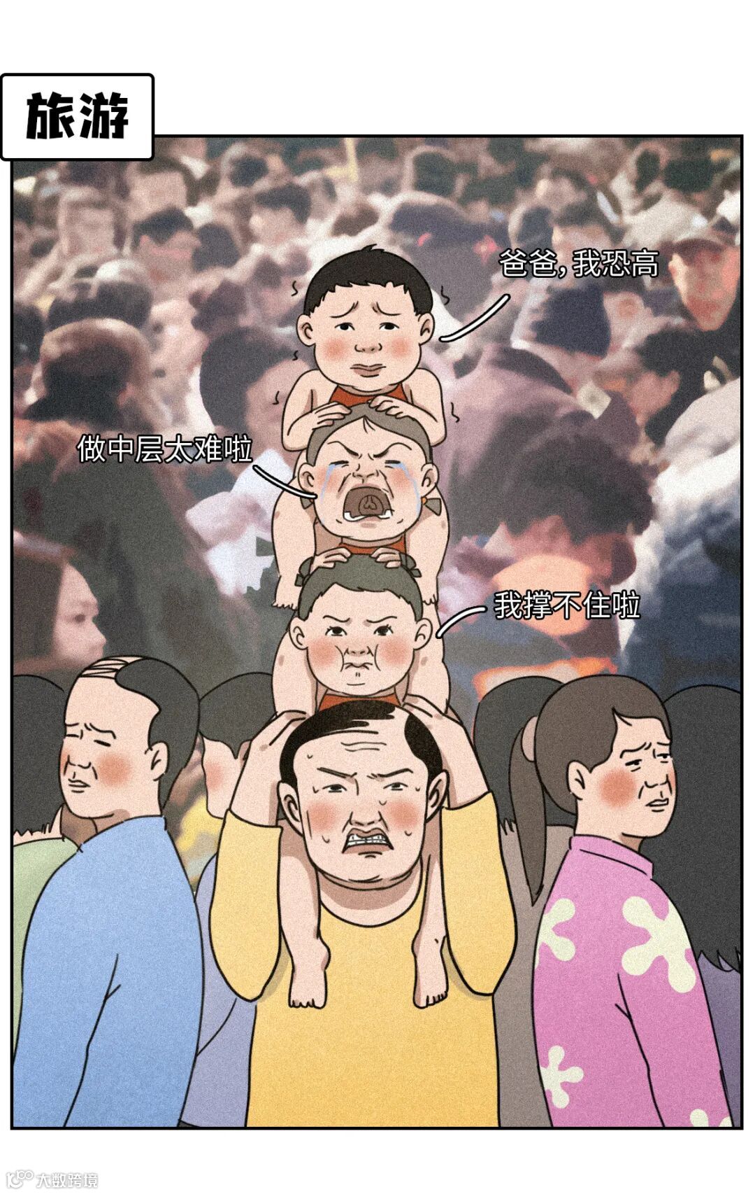 景点经常人山人海、拥挤不堪,堆罗汉是三胎家庭必备技能。
