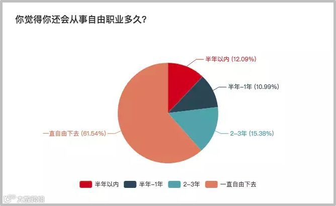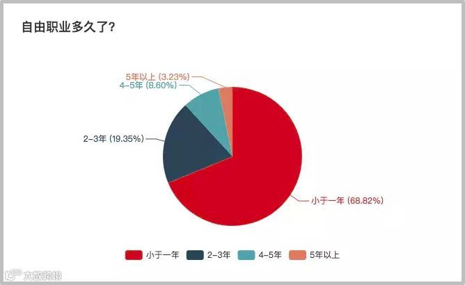 占比第二多的是工作2-3年的自由职业者。基本规律是:自由时间越长,人数越少。