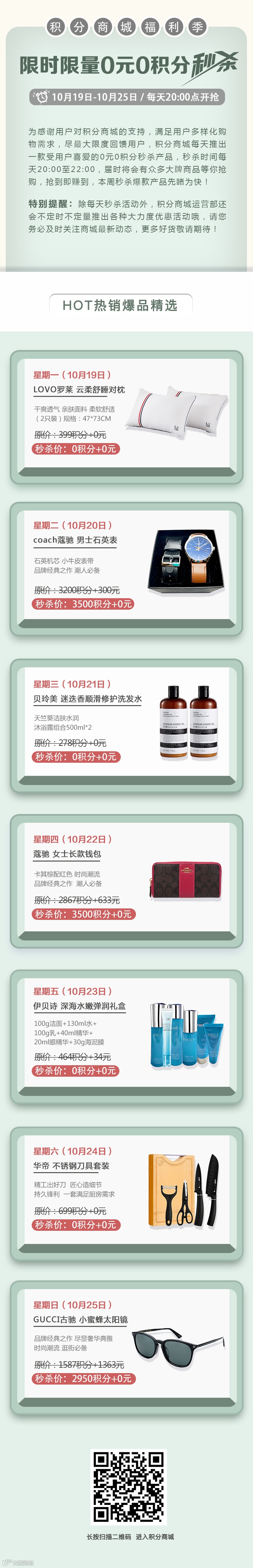 导读:10月19日—10月25日每晚8点,0元0积分+纯积分商品限时限量秒杀,敬请关注!