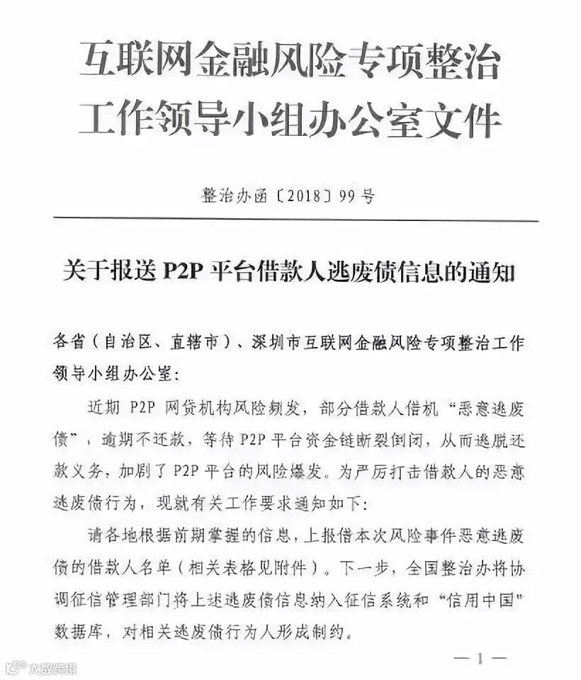 原标题:【注意】P2P恶意逃废债借款人信息前两批次名单已接入征信系统,第三批正在审核,逐步加强对逃废债行为人的制约