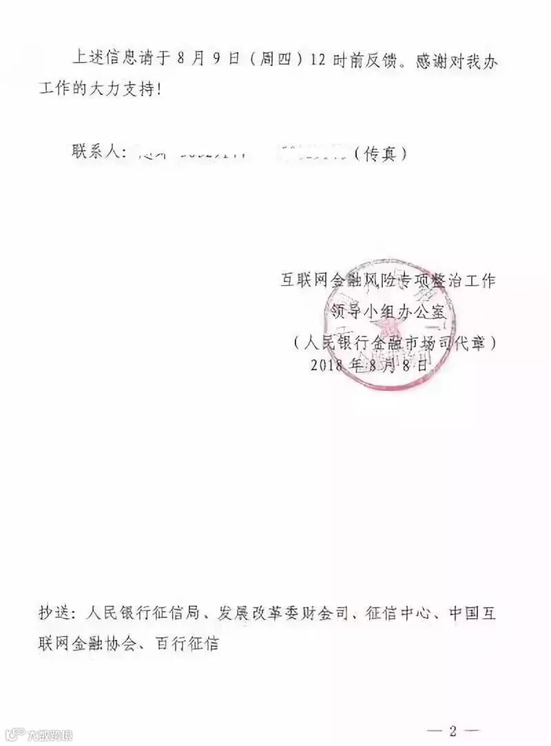 10月18日,据金融时报报道,首批P2P恶意逃废债借款人信息已被纳入人民银行征信中心和百行征信的系统,包括企业借款人信息和个人借款人信息。