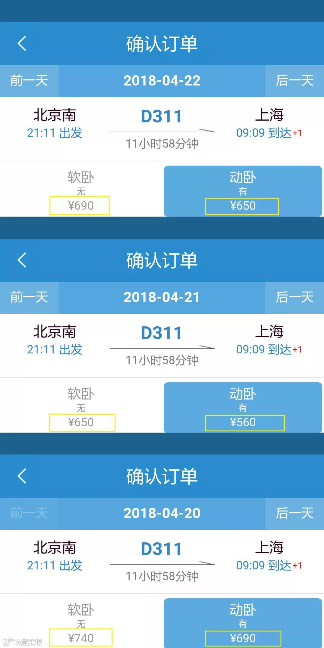 网信普惠查阅了3天的京沪两地的火车票价,果然变化明显。