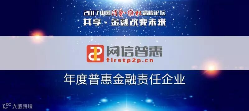 12月6日,由中国消费者报社、中国消费网主办的“共享·金融改变未来”论坛在京召开。来自政府、行业协会、专家、企业的嘉宾共同探讨科技助推普惠金融发展和金融消费者保护话题。网信普惠获得年度“普惠金融责任企业”称号。