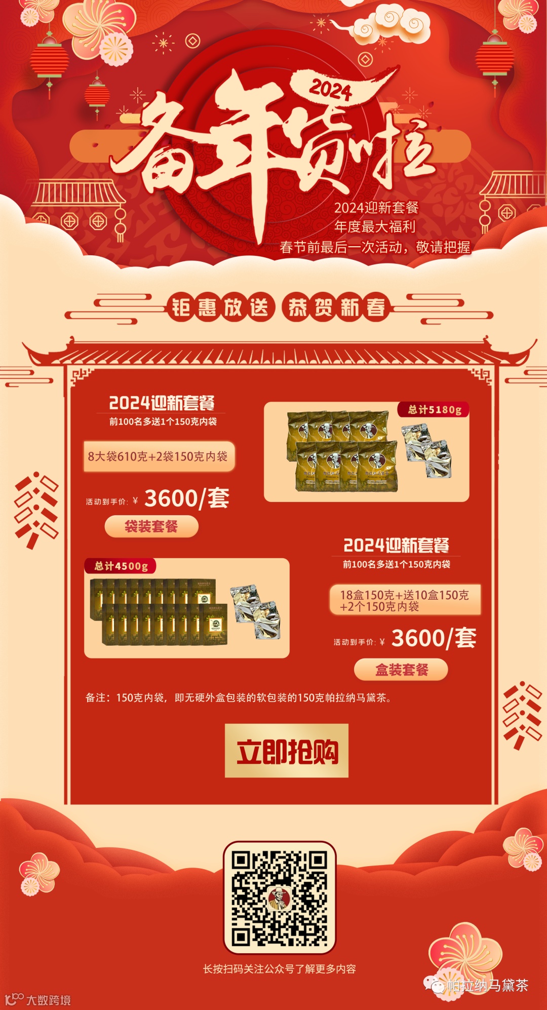- 同样3600元,您将拥有18盒各150克的精品马黛茶。