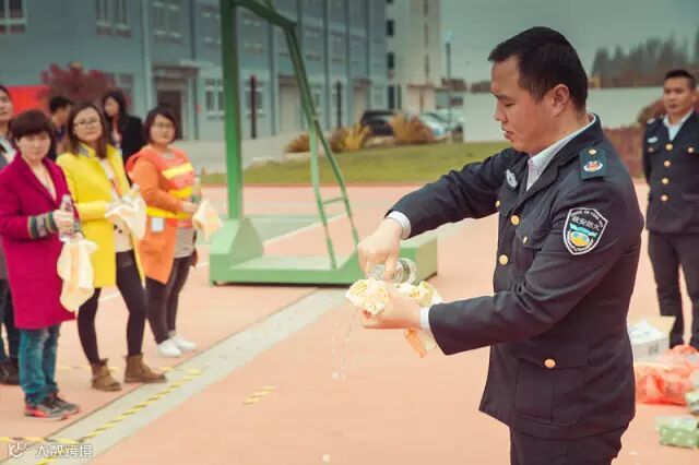 下午13时,消防演练正式开始。首先,由政安消防培训学校教官在现场对大家进行了消防知识讲解,阐述了防火、灭火的技巧和方法,并讲述了灭火器的使用方法及灭火器救火的要点。