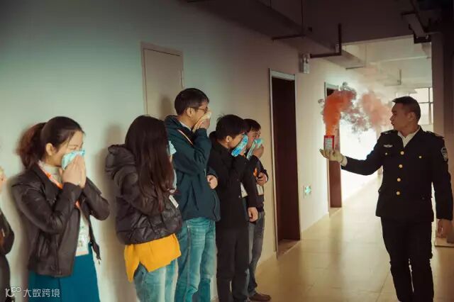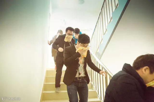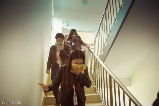 按照消防负责人指导的要求来进行逃生演习,遇到火情,尽快找到潮湿的毛巾物料等紧紧捂住口鼻。