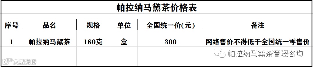 结合公司9月11号董事及股东联合会议通知,我公司已联合淘宝产权管理部门,实行帕拉纳马黛茶系列产品价格控制方案,望各级代理商相互转告,以免造成不必要的损失,{我们有淘宝低价侵权商家投诉、记录的处理专员,请各位商家遵守公司价格管控制度。}