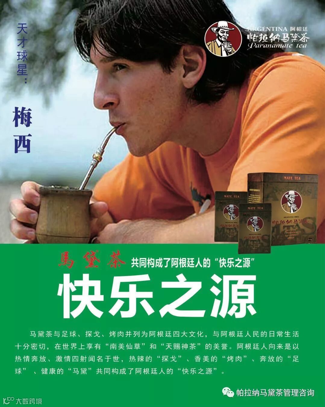 而我们中国人,除了知道阿根廷足球,马黛茶也是中国人了解阿根廷的一个重要途径。我们公司经营帕拉纳马黛茶十四年了,此次世界杯,虽然阿根廷止步于1/8淘汰赛,但我们还是祝福梅西,也祝福阿根廷!加油,下一个世界杯,中国&阿根廷携手出线!!!