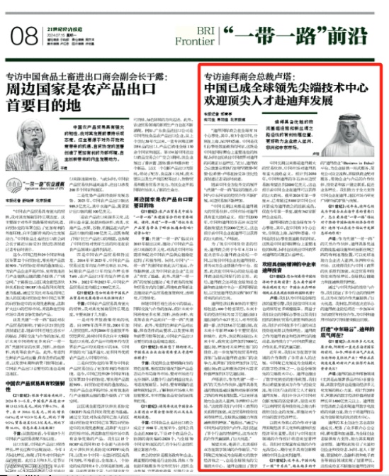 展望未来,他表示,尤其看好双方在数字领域的合作前景。“中国现已发展成为全球最大的数字经济体之一,也是全球领先的尖端技术中心。迪拜也推出了数字化转型的宏伟蓝图,我们热切希望加强双方合作与经验交流,吸引该行业的顶尖人才前往迪拜发展。”他认为,中国经济将续写辉煌,双方以技术为核心的合作将迎来显著增长。