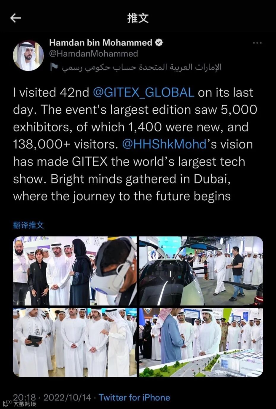 迪拜王储哈姆丹殿下推文