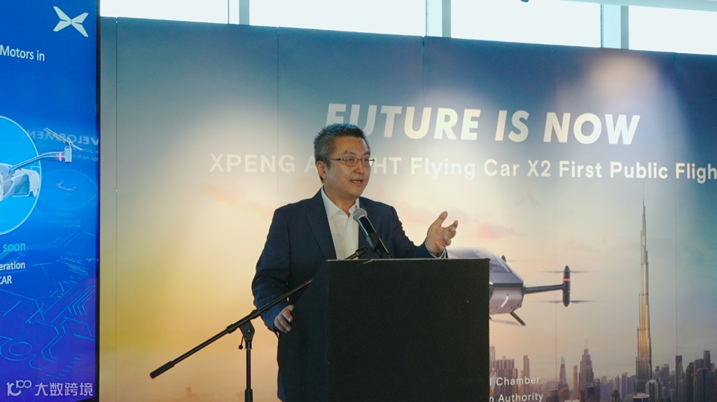 小鹏汽车副董事长、总裁顾宏地现场介绍小鹏汇天飞行汽车海外首飞