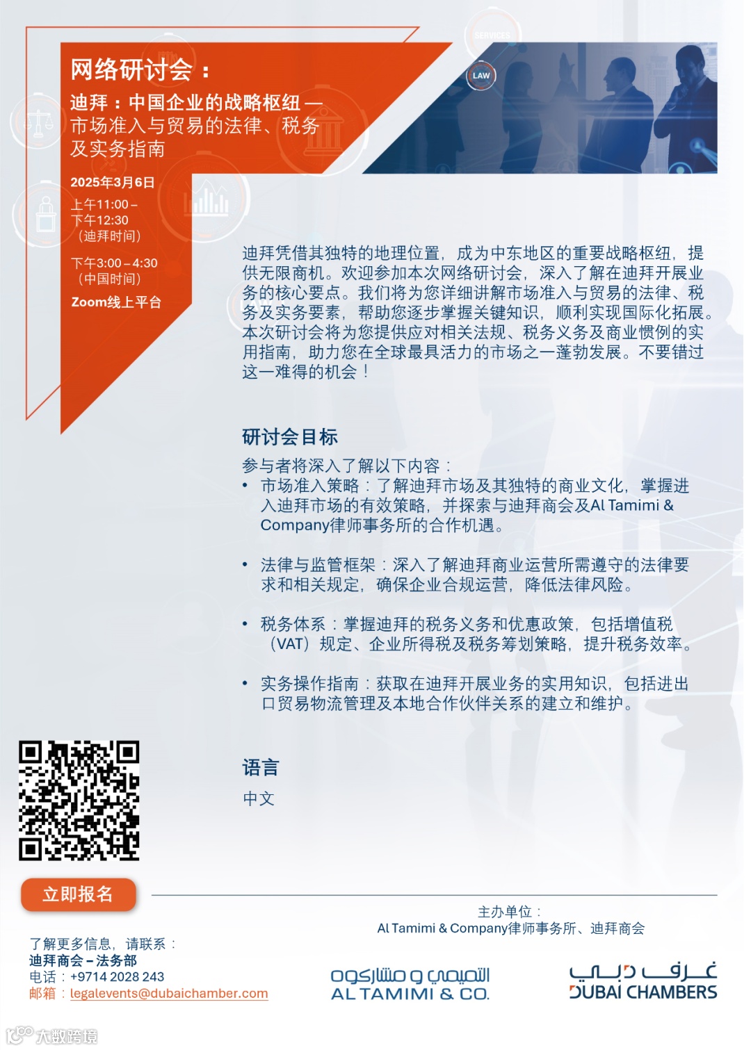 欢迎报名由迪拜商会与Al Tamimi & Company共同举办的独家网络研讨会: