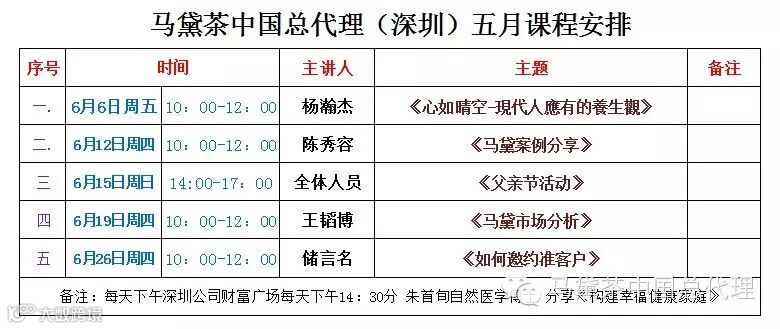 随着马黛茶在中国不断发展和越来越多的消费者加入到马黛茶大家庭,公司每个月将安排一定的活动及课程来提升我们的文化素养,让我们一起共创健康、平安、富足、和谐的马黛家园!马黛有您的加入将会更加精彩!