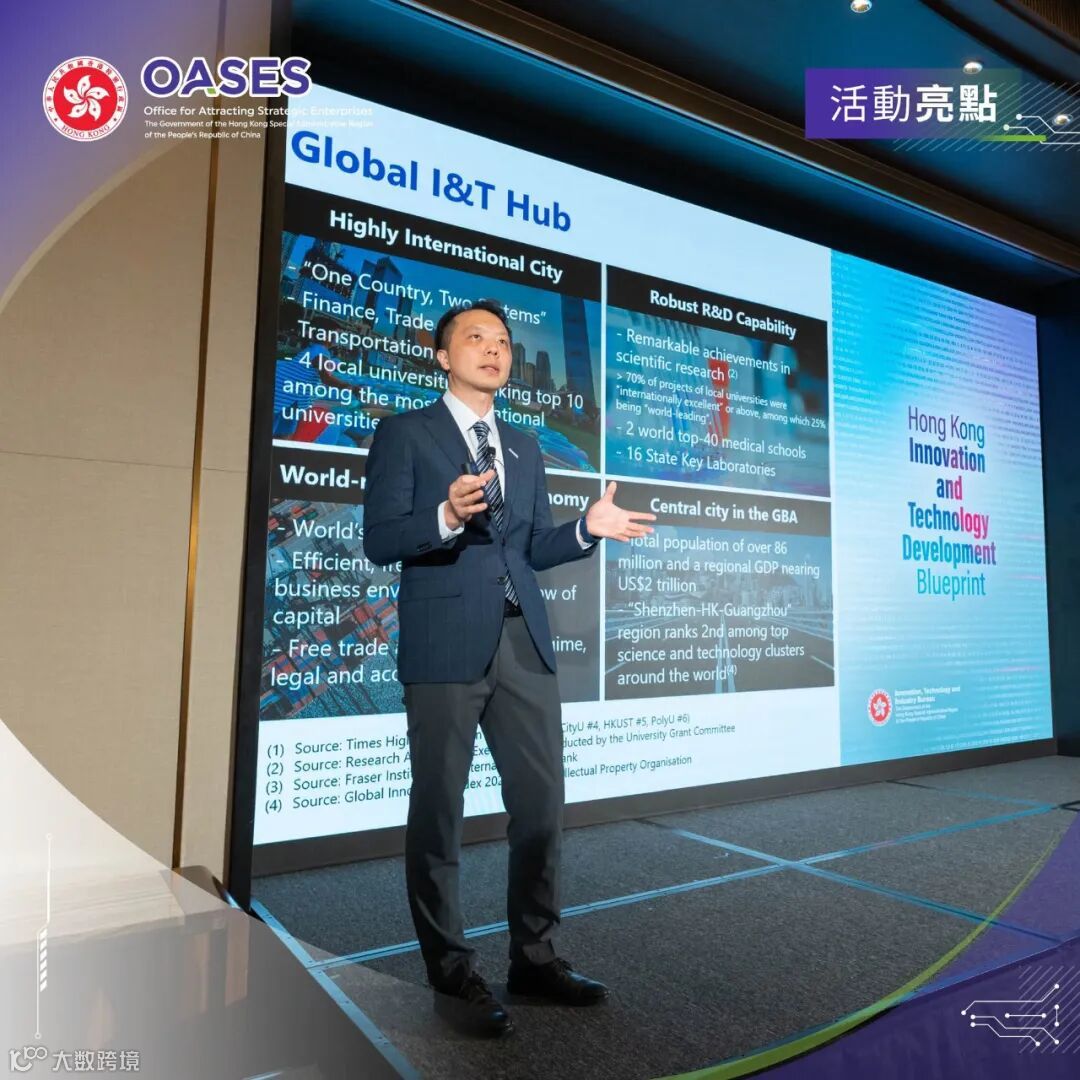 蒋博士与三位嘉宾深入探讨了在国际新形势下,香港如何凭借「一国两制」、国际化市场与创新政策,成为全球创科企业的理想舞台。嘉宾们亦分享他们的行业经验,从生物科技、数字经济、自动驾驶等前沿产业的角度,分享了企业落户香港的考量,以及对香港创科未来的信心与期望。