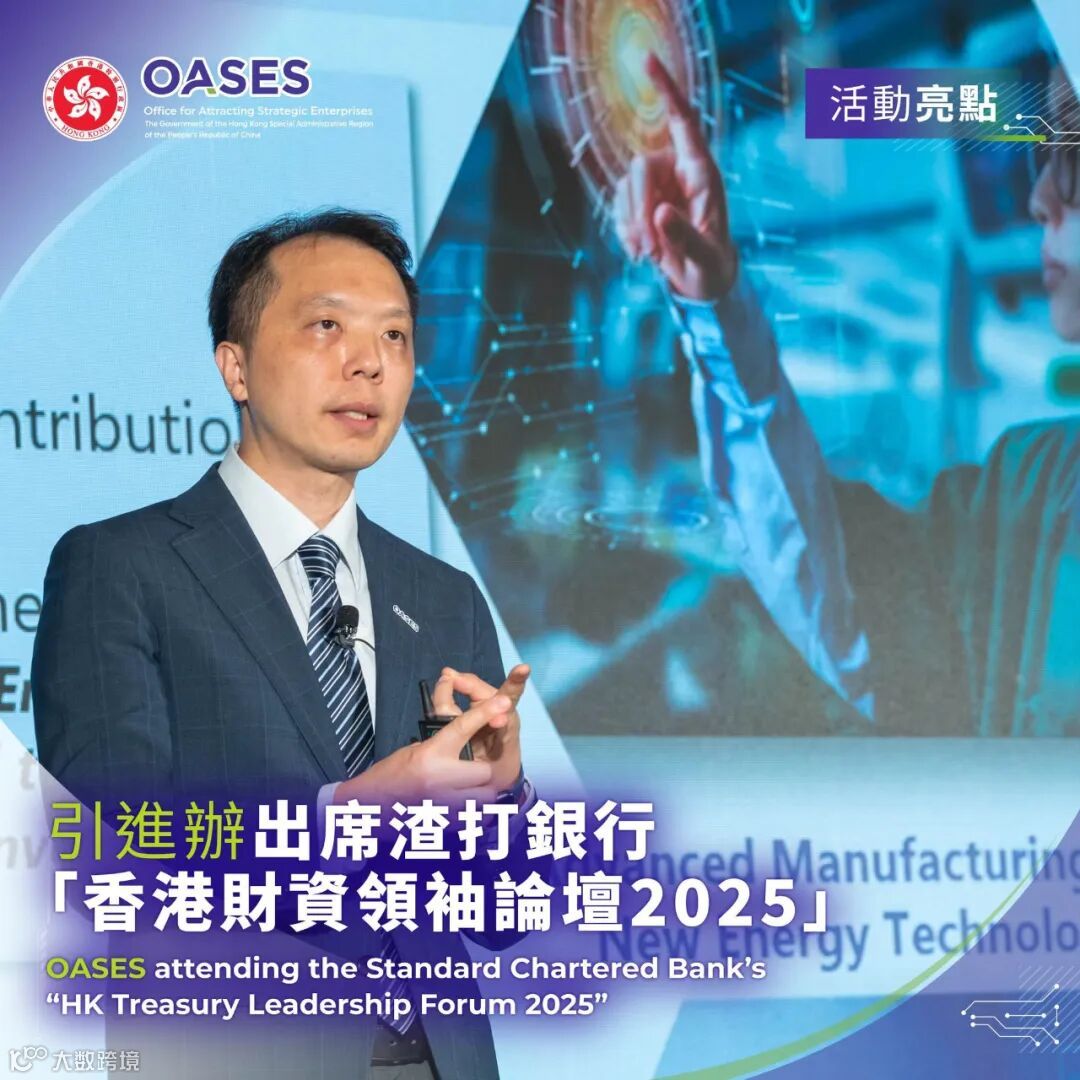 引进办执行总裁彭文俊先生于 10 月 15 日应邀参加由渣打银行举办的「香港财资领袖论坛2025(Hong Kong Treasury Leadership Forum)」,进行主题演讲,助力与会企业领袖深入了解香港推动创科发展优势与引进办的一站式支援服务,共同推动企业在港落户发展。