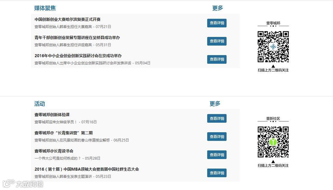 2、壹零城邦将定期举行创新相关活动,包括线上分享、线下会议沙龙等。在网站首页大家可以看到每期的活动回顾。扫描壹零城邦以及壹新社区二维码并关注可接收最新活动预告。