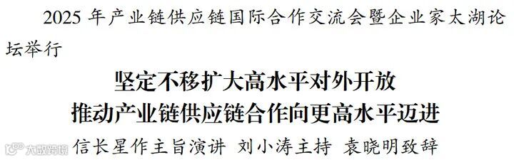 11月18日,以“汇聚新质生产力 开放合作赢未来”为主题的2025年产业链供应链国际合作交流会暨企业家太湖论坛在无锡举行。省委书记信长星作主旨演讲,省长刘小涛主持。商务部党组成员、部长助理袁晓明出席并致辞。