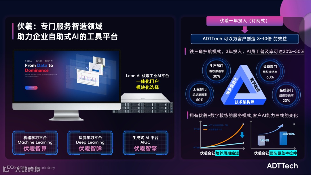 ADT伏羲-智能工业AI平台以“AI for Industry”为战略核心,创新融合“无代码平台”与“数字教练体系”,打破AI应用与人才能力的双重瓶颈,助力企业90天构建自主AI能力体系,推动降本增效与质量优化目标快速落地。