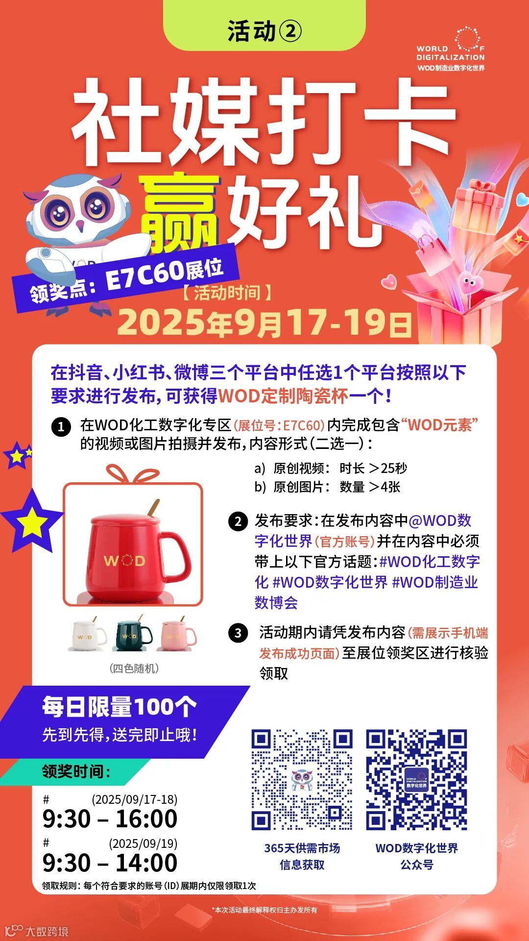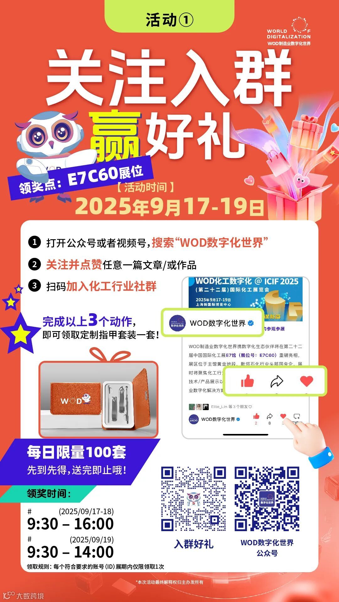 WOD制造业数字化世界携数字化生态伙伴将在第二十二届国际化工展E7馆(展位号:E7C60)重磅亮相,将聚焦化工行业生产、安全、环保等核心场景,通过技术/产品展示以及同期举办mDX石化行业数字化转型峰会,打造“一站式化工企业数字化解决方案集群专区”。