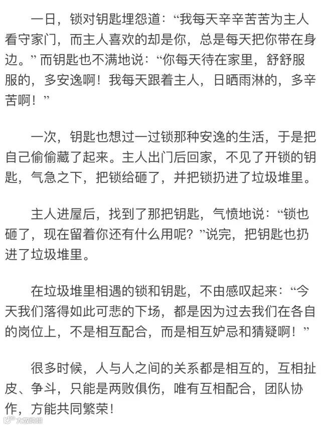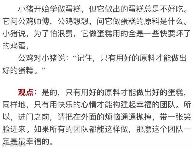 观点:相互沟通是维系同事、老板之间的一个关键要素。有什么话不要憋在肚子里,多同同事、员工交流,也让同事、员工多了解自己,这样可以避免许多无谓的误会和矛盾。