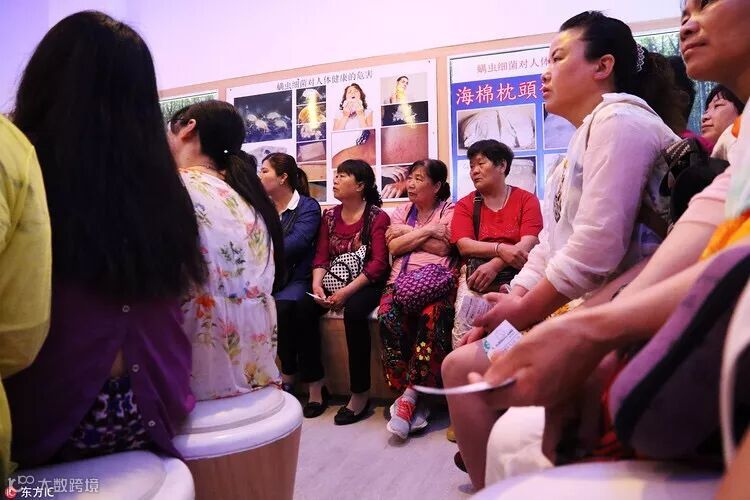 2016年3月31日,泰国乳胶土产批发市场,导游把团体游客分别带入隔间,通过视频、体验为其讲解乳胶制品的优良特性。(东方IC 图)