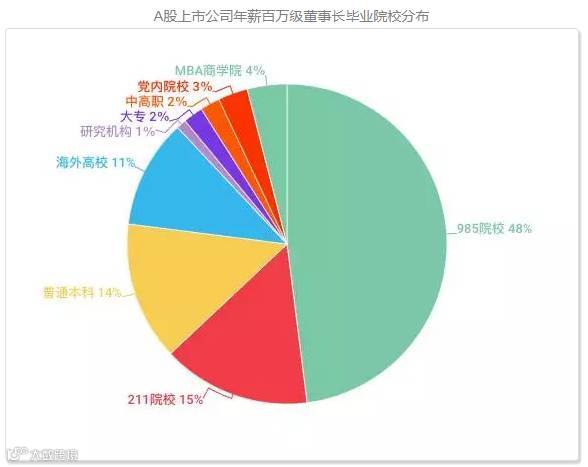 在291个已披露具体毕业院校的百万年薪董事长中,985出身的高管占到48%。