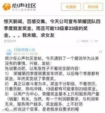 12月18日,在华为论坛心声社区中,有荣耀员工发帖爆料了将拿到23级的奖金。经小编多方打听,华为23级奖金将近百万元!