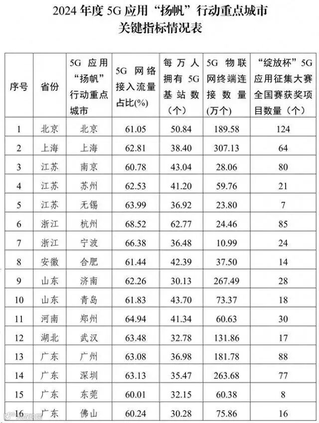 近日,工信部发布2024年度5G应用“扬帆”行动重点城市总结评估情况的通报。16个城市在流量提升、连接规模、应用创新、网络建设、政策措施等方面取得突破,入选首批5G应用“扬帆”行动重点城市。其中,江苏的南京、苏州、无锡三市入选。