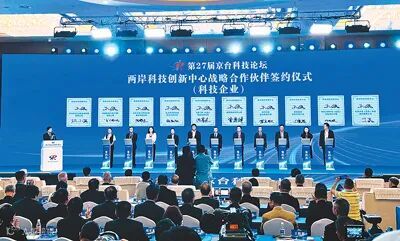 图为在第27届京台科技论坛上举行的签约仪式。