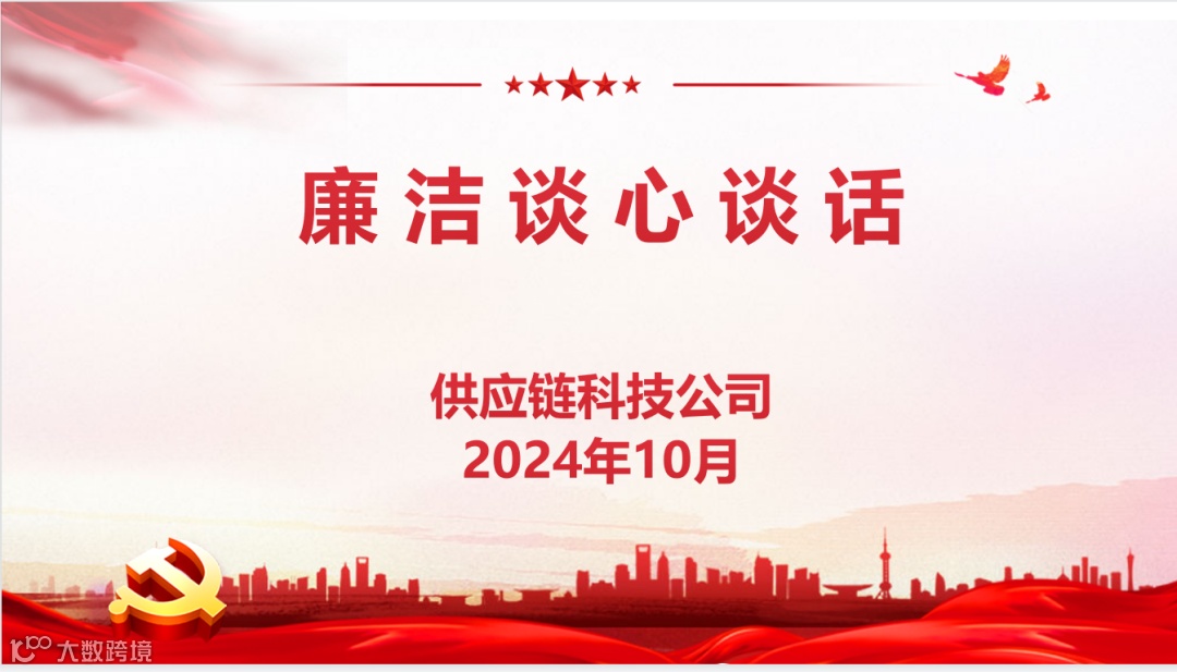 10月24日至28日,供应链科技公司组织开展领导班子与全员廉洁从业谈心谈话,通过经常性的教育提醒,增强公司干部员工廉洁自律意识,提升公司党风廉政建设水平,推进全面从严治党,保障公司高质量发展。