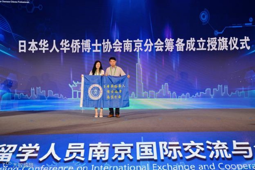 葛理事长代表博士协会徐荣会长向博士协会南京分会(筹)会长谢丽强博士授旗,谢丽强博士表示将秉承博士协会宗旨,团结在宁留日学人务实架起中日两国科技教育和经济文化交流的桥梁,为广泛开展南京与日本各界交流合作贡献力量。