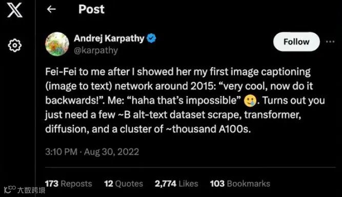李飞飞:我在我的书也写到了,我的整个学术之旅实际上就是寻找北极星的激情,我也相信这些北极星对我们领域的发展至关重要。在我研究生毕业后,我的北极星是讲述图像故事,这是非常重要的视觉智能。而视觉智能是 AI 和 AGI 的重要组成部分。所以当 Andrej 和 Justin 做到这一点时,我想的是:天啦,那是我的人生梦想!我接下来做什么?它来得比我预想的快,我以为还要再过 100 年呢。