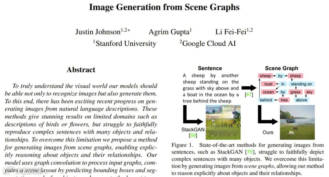 李飞飞:我为 Justin 感到自豪。我也为他在博士阶段做的最后一个工作感到自豪。那就是生成式 AI 领域方面的研究:基于输入的语言生成画面。这是最早期的生成式 AI 研究之一。那时候用的模型是生成对抗网络(GAN)。这很难用,并且使用的语言也不是自然语言,而是必须输入一个 scene graph 语言结构。所以可以看到,从匹配到风格迁移再到生成,这是一个连续演进的过程;但在外部世界看来,这些就像是突然发生的一样。