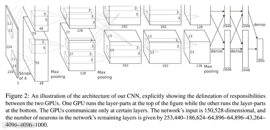 其中一个深度神经网络在 ImageNet 挑战中表现非常出色,并且超越了飞飞研究的所有其他算法。AlexNet 神经网络有 6000 万参数,在 2 台 GTX580 上训练了 6 天,那是当时的顶级消费级显卡,于 2010 年推出。而现在最强大的应该是英伟达 GB200。猜猜看 GTX580 和 GB200 的计算能力差多少倍?数千倍。也就是说,如果在单台 GB200 上训练 AlexNet,所需时间不超过 5 分钟。