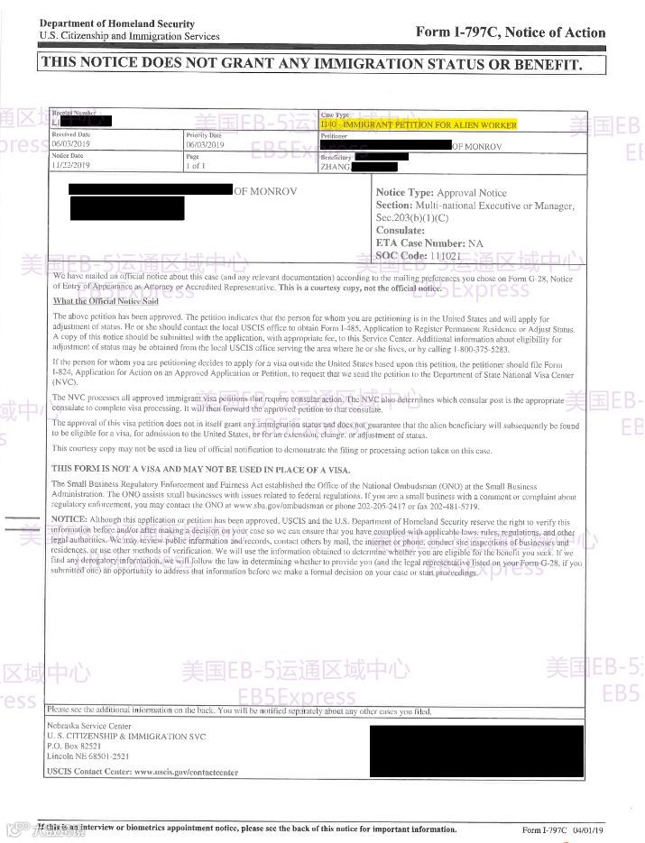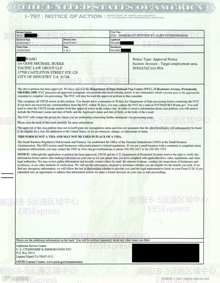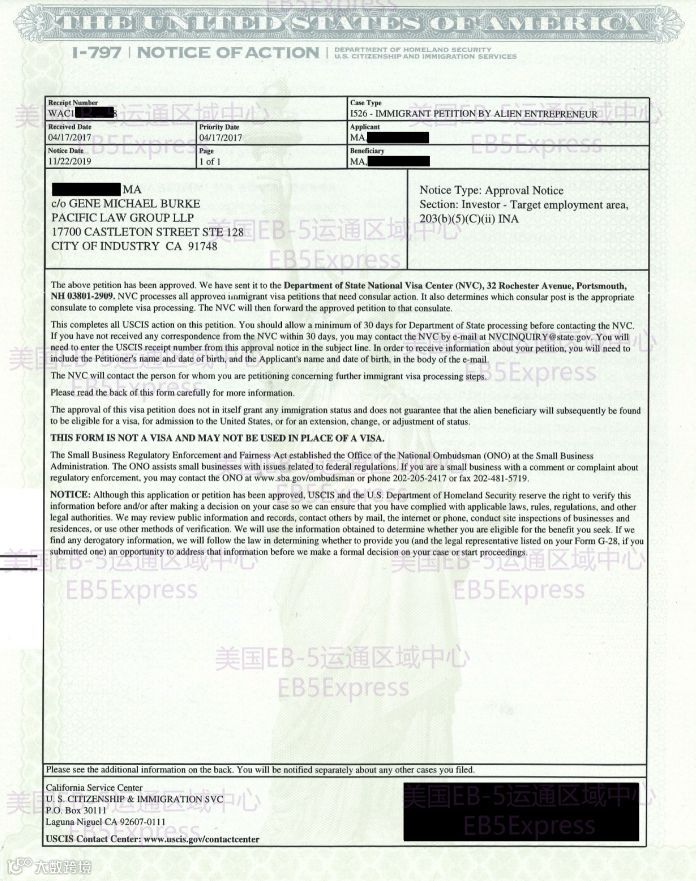 获批函2:EB-5 I-526获批